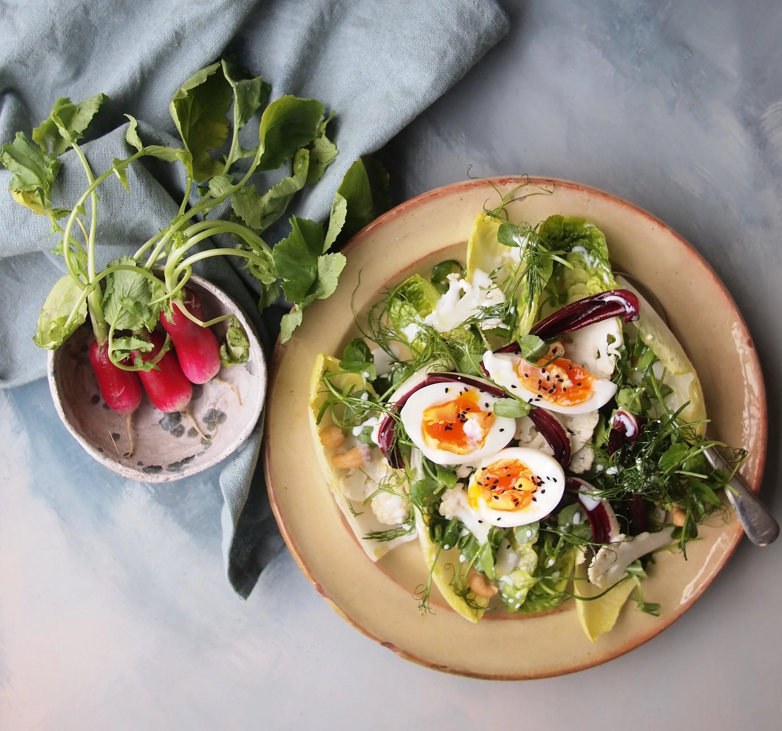 SHAVED CAULIFLOWER SALAD WITH TAHINI DRESSING